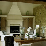The large fireplace was designed from small photograph of a similar stone fire seen in France. Working with the stonemason’s we developed the details to ensure it could be constructed inside the refurbished barn.